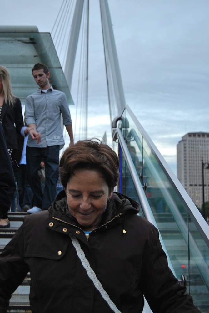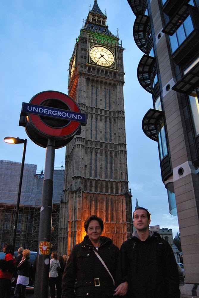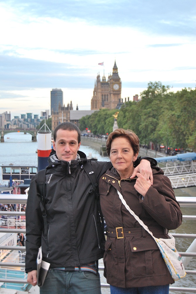 Luego co Gon sobre el puente que cruza el Támesis y yo de espaldas bajando del puente, que por cierto es larguísimo, es enorme la anchura que tiene el río.